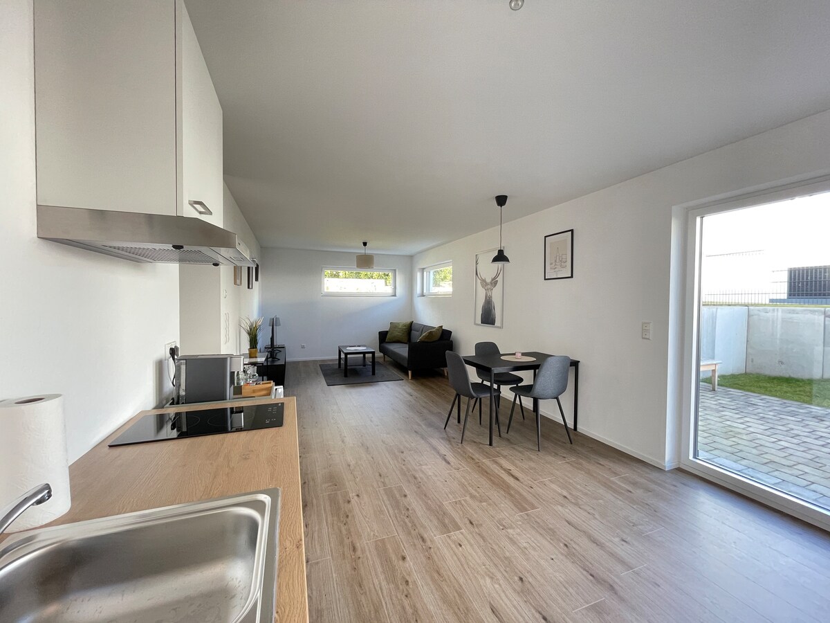 Nuevo apartamento elegante en una zona tranquila. En las inmediaciones del bosque encontrará paz y tranquilidad Equipamiento del apartamento: - Parquet de roble con calefacción por suelo radiante - Puntos LED - Cama de roble 140 x 200 cm - Cocina de 2022 microondas, vitrocerámica, nevera, cafetera, tostadora - Ducha a ras de suelo - Neceser: tampón, gorro de ducha, - Gel de ducha, champú - TV de pantalla plana, wifi gratuito - Sistema de ventilación - 2 plazas de aparcamiento gratuitas delante de la puerta - No fumadores - Se admiten mascotas - Entrada ancha y sin barreras