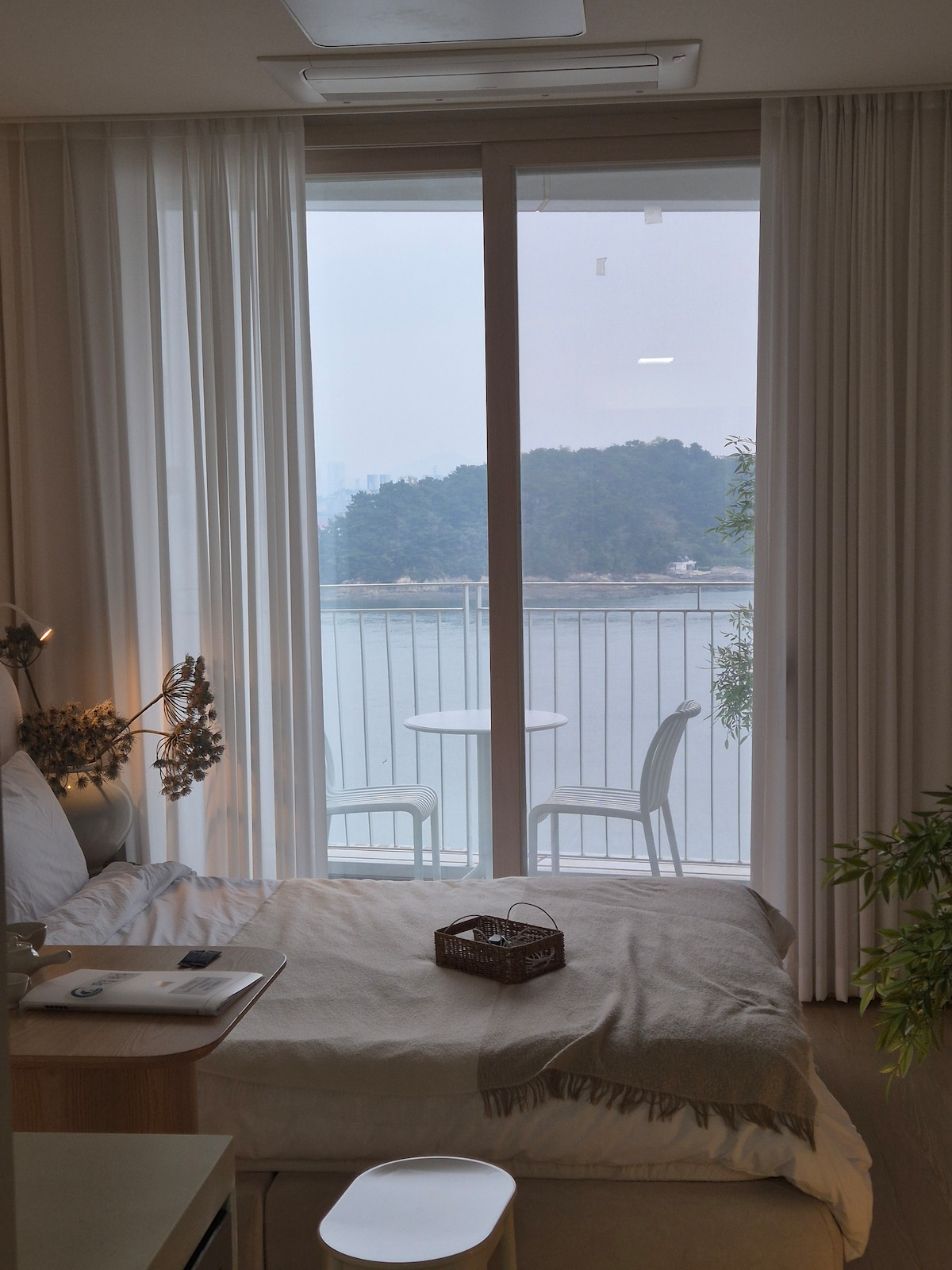 재방문률이 높은 영종도 Airbnb 일상을 잠시 내려놓고 매일 눈 앞에 펼쳐져 있는 바닷가의 풍경을 보며 나만의 혹은 누군가와의 즐거운 시간을 보내세요. 따뜻한 공간에서 베란다 바깥으로 내려다 보이는 바다와 예쁜 건물들. 따뜻한 오후의 햇살이 드리운 풍경도 늦은 밤 조명이 들어오는 바닷가의 모습도 방 안에서 편안하게 즐겨보세요. ▶체크인 : 오후 4시 ▶체크아웃 오전 11시 얼리 체크인, 레이트 체크아웃 : 시간 당 만원 추가 (레이트체크아웃은 1시까지만 가능합니다.) ▶이용시설 ▶무료주차 B1 ~ B3 (전기차 충전자리 있음) 객실 내 전체 시설 이용가능 WiFi TV : Youtube, Netflix, Disney+, Watcha, TVing, Wavve 시청가능 침실, 화장실, 에어컨 커튼, 퀸베드, 호텔식 침구류 무드등 등으로 사진 찍기 좋아요. 2~3인 조리도구, 식기 와인잔 하이볼잔 구급상자, 헤어드라이어, 고데기 구비중입니다.