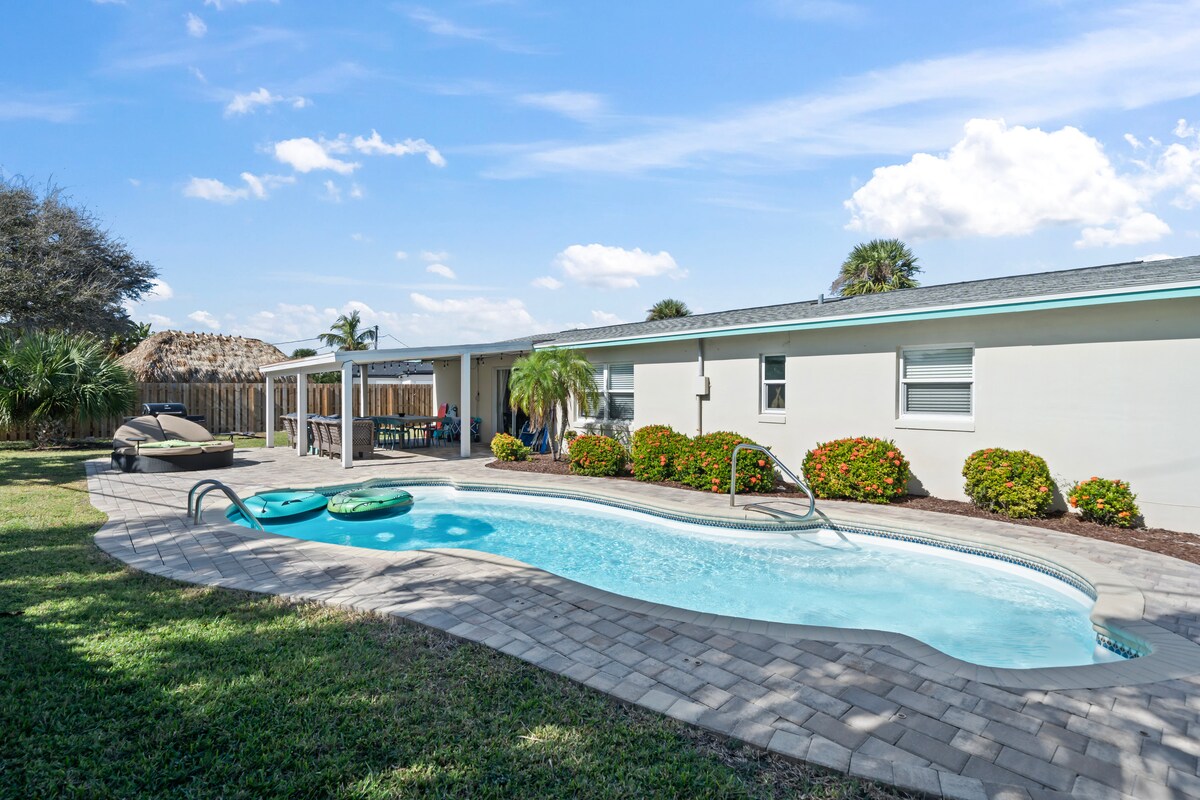 Bienvenido a mi casa de 5 dormitorios junto a la playa con una hermosa piscina/gruta para nadar. La casa está en una isla de barrera, a 10 minutos a pie de la playa. El espacio cuenta con una cocina totalmente equipada, parrilla para barbacoa para entretenerse junto con un montón de asientos interiores y exteriores. Hay un aeropuerto internacional a 20 minutos, Disney está a una hora y el centro espacial Kennedy está a 45 minutos en coche. ¡Reserva unas vacaciones inolvidables en Beachside Grotto!