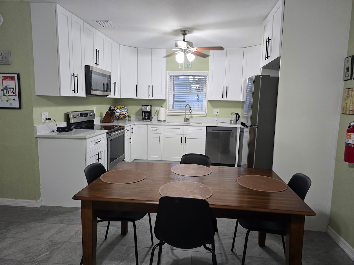 Fully furnished 3-bed house in Historic Kenwood, 15 minutes from white sand beaches and less than 10 minutes from downtown St. Petersburg. Walking distance to restaurants, shops, breweries, beach trolley, and bike share. Sip your morning coffee in the sunny breakfast nook or in the serene Florida room and enjoy a relaxing evening under string lights on the private backyard patio.