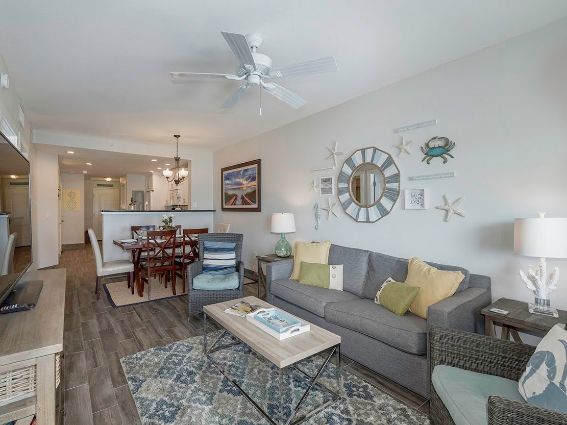Esta moderna suite de 3 dormitorios en condominio del piso superior ofrece vistas panorámicas al Golfo de México desde balcones privados. Mientras preparas tu café matutino en la espaciosa isla de la cocina, puedes ver a los arrastreros camaroneros que salen al mar. Disfruta de un cóctel mientras observas la puesta de sol sobre las aguas abiertas del Golfo de México. Esta suite puede dormir 8, con camas tamaño king o queen en cada uno de los tres dormitorios, un cómodo sofá cama de tamaño completo en la sala de estar y 3-1/2 baños.