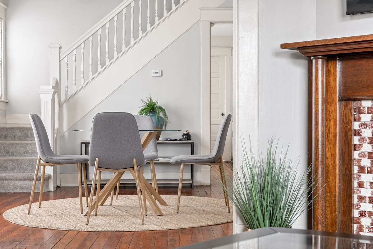 Estoy muy emocionada de compartir mi hermosa casa contigo, ubicada en el barrio Bates Hendricks de Indy. Cerca de Fountain Square, Lucas Oil Stadium, Gainbridge Fieldhouse y mucha más diversión. La casa tiene 3 hermosos dormitorios, 2 de ellos con baño. Hay un salón arriba con un cómodo futón de cuero para más espacio para dormir. Junto a eso hay una hermosa azotea con barbacoa de gas, chimenea y comedor para más de 6 personas. También se encuentra en la misma calle que la famosa tienda de chicas HGTV Good Bones. ¡Ven a visitar Indy!