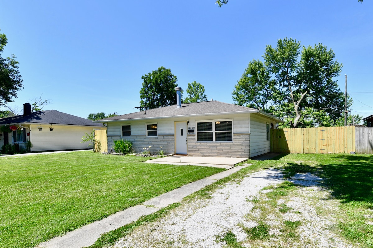 ¡Ubicación definitiva del Speedway enfrente del estacionamiento del IMS #6 y solamente 4 millas de la zona céntrica Indianapolis! Esta casa recién renovada 3 BR/2BA tiene capacidad para 8 personas cómodas. Mucho espacio para relajarse en 3 áreas de reunión interiores con Internet de alta velocidad y 5 televisores inteligentes. Al aire libre, disfrute de una terraza cubierta, una fogata y un garaje para juegos con ping-pong, un pozo de maíz y dardos. La cocina gourmet cuenta con nuevos electrodomésticos SS, una estación de café y una barra de desayuno. ¡Disfruta de toda la acción de Speedway e Indy con estilo!