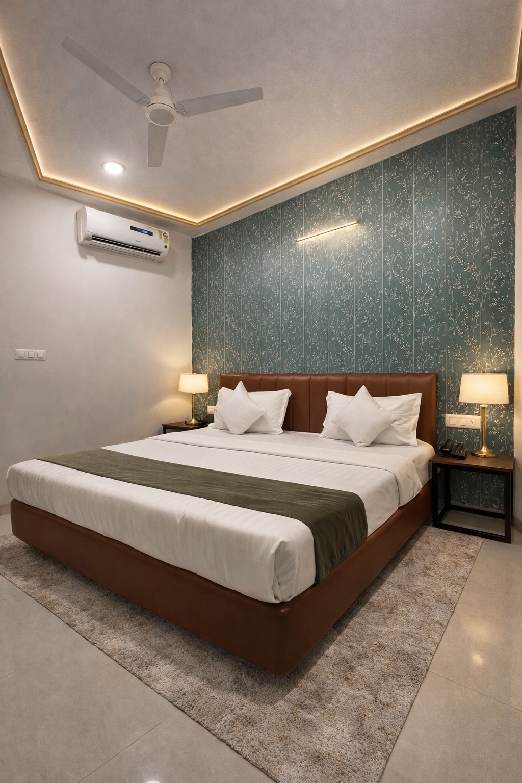 Step into a beautifully furnished room that blends modern elegance with warm comfort. The space features a plush King-size bed, soft lighting, and premium linens to ensure a peaceful sleep. Large windows bring in natural light, creating a calm and refreshing ambience throughout the day.