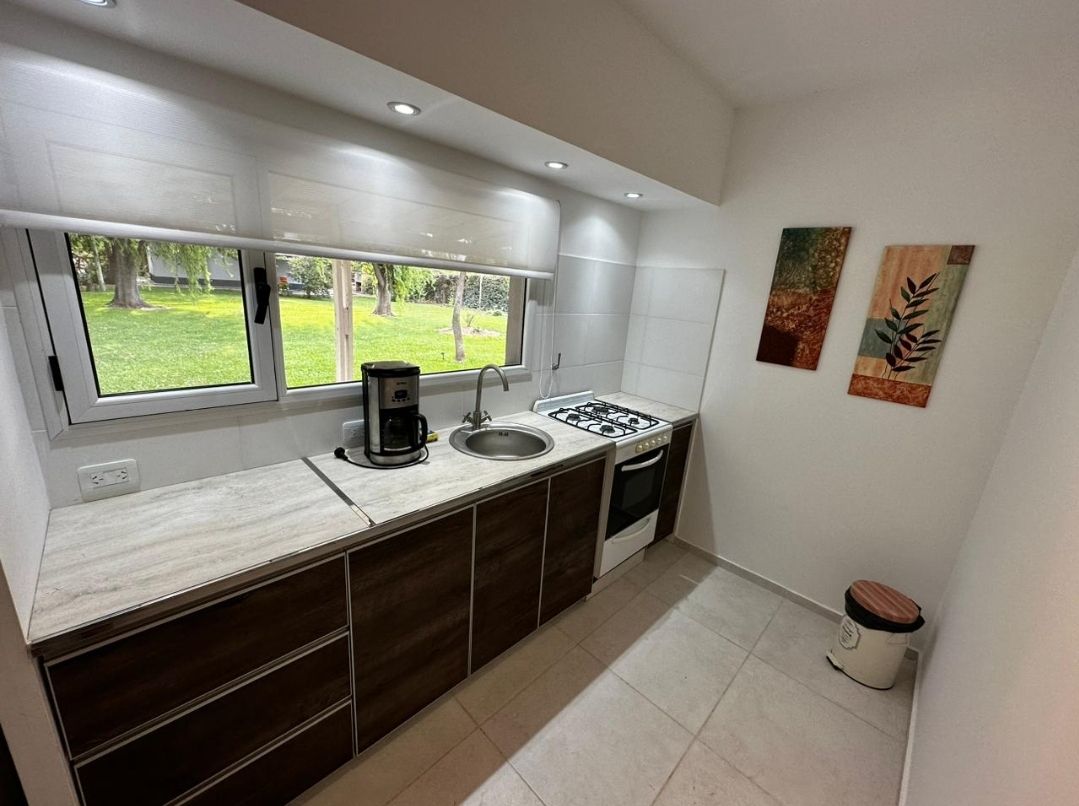 Departamento pequeño, con un dormitorio, moderno en planta baja. Ideal para 2 personas. Zona residencial, tranquila y cómodo acceso. Dispone de cable y wi-fi, aire acondicionado, TV 32”, heladera con frizzer y cochera descubierta para auto pequeño.
