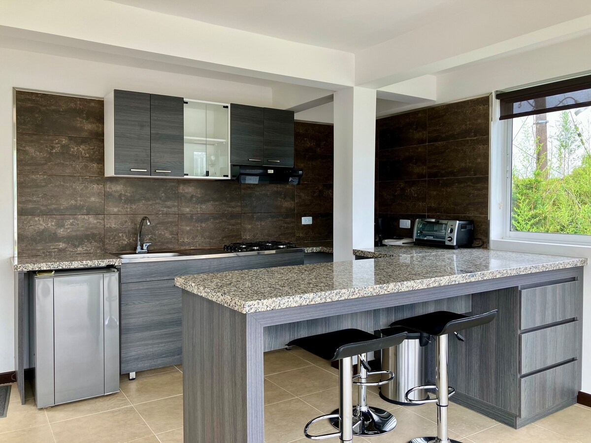 Bienvenido a esta encantadora cabaña con jacuzzi, ducha al aire libre, jardín privado y arroyo, ideal para una escapada romántica. Perfecta para parejas, cuenta con una acogedora cama doble, baño privado, cocina y ventanas que llenan el espacio de luz natural y ofrecen una bonita vista del entorno verde que rodea el lugar. A 5 minutos del centro de Ginebra. A 30 minutos de Puente Piedra. A 45 minutos del Aeropuerto Internacional (CLO). A 60 minutos de Cali. ¡Un refugio tranquilo con fácil acceso a todo!