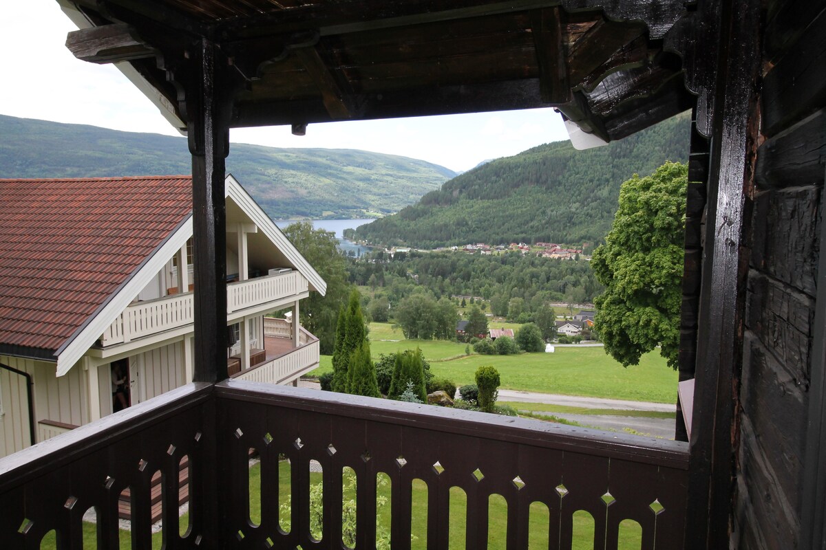 Casa en buenas condiciones en pequeñas granjas. Porche privado con muebles al aire libre y zona al aire libre con césped. Buena vista a los fiordos y las montañas. Sala de estar, comedor, cocina, 4 dormitorios, baño con ducha/inodoro, lavadero con lavadora y baño/inodoro adicional. Cocina totalmente equipada lavavajillas, horno, nevera y congelador. Sala con TV y la mayoría de los canales. Internet gratuito; wifi. A poca distancia de la montaña / Hardangervidda, posibilidades de pesca, Langedrag, terreno de senderismo. En el centro del Valle Medieval, Numedal. Se incluyen las camas y toallas hechas.