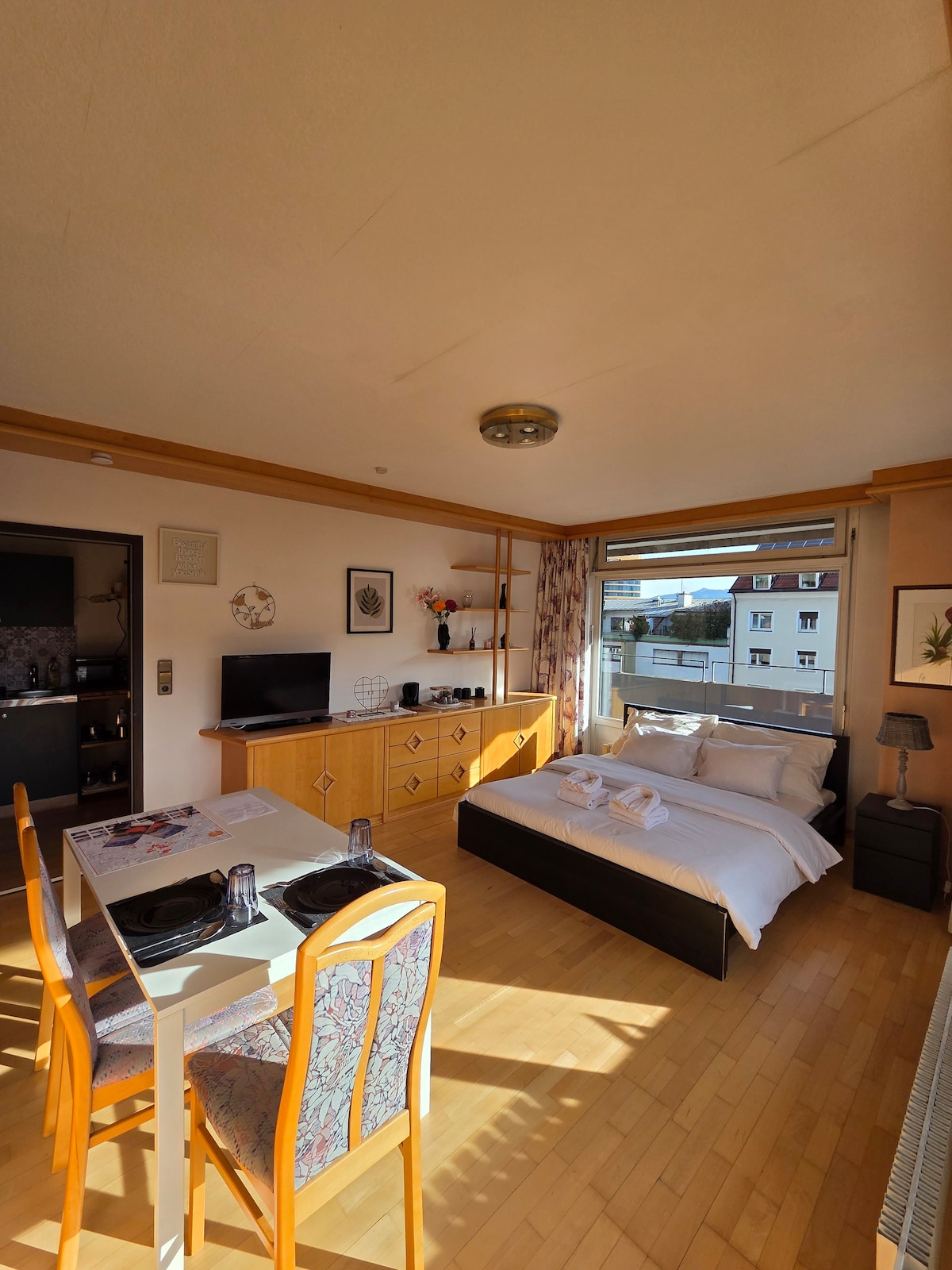 Estudio soleado y privado a solo 20m de la estación central de Innsbruck. Totalmente privado, con un amplio balcón en forma L, cocina equipada y baño con bañera. Los huéspedes también pueden disfrutar de acceso a un jardín, ideal para relajarse. A solo 5 minutos a pie del casco antiguo, con comida 24 h, supermercado y restaurantes cerca. 🎁 Incluye la Welcome Card: desde 2 noches con transporte público gratuito, y desde 3 noches con acceso a actividades especiales y descuentos en toda la región.