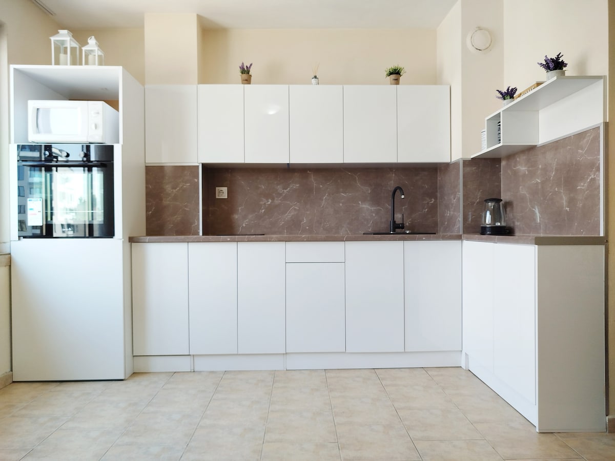 Nuevo apartamento contemporáneo ubicado a solo 10 minutos del centro de la ciudad y del casco antiguo. La Feria Internacional y el Grand Hotel Plovdiv están a 5 minutos a pie. Junto a las paradas de autobús. Estacionamiento gratuito en la calle. El espacio consta de un dormitorio con una cómoda cama tamaño king, una gran sala de estar con un televisor de pantalla plana y un enorme sofá que se convierte en una bonita cama para dos. Hay aire acondicionado. La cocina está equipada con todo lo necesario.