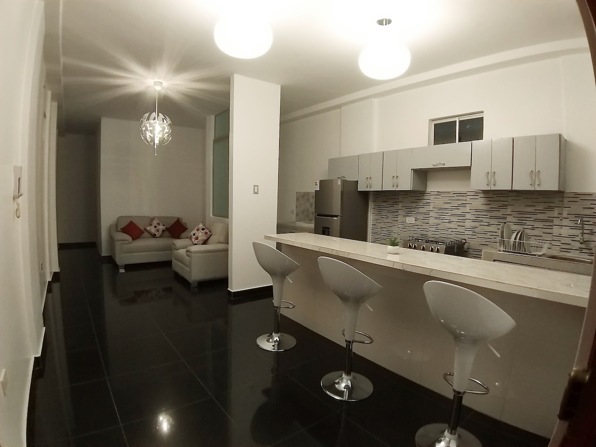 Apartamento independiente, seguro y moderno. Disfruta de una estancia confortable. Su diseño elegante incluye una acogedora sala de estar, cocina totalmente equipada, y las plantas de interior dan un ambiente fresco y relajante. Cuenta con Wi-Fi, televisión y aire acondicionado. Situado en el segundo piso con ingreso privado. La ubicación céntrica facilita el acceso a los puntos de interés de la ciudad. Es ideal para viajeros de negocios o de placer que buscan comodidad y estilo.