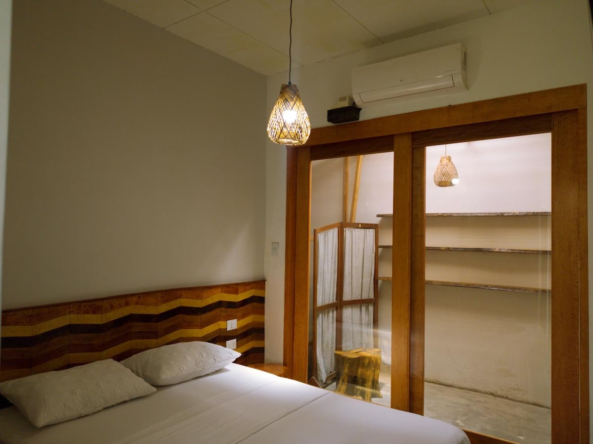 Desconecta de tus preocupaciones en este espacio tan amplio y sereno. A 10 minutos del aeropuerto de iquitos. Quédate una noche antes de partir a tu siguiente aventura. Balcón hamaca con una hermosa vista a la naturaleza, baño privado y ventilación natural.