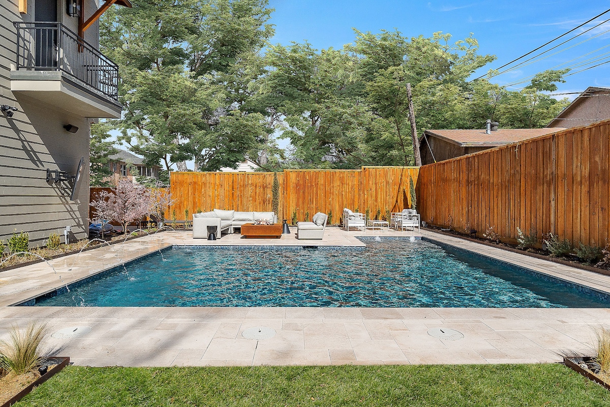 Piscina semiprivada fría para ti y tus amigos, con suficiente cobertura del sol para esconderse o sumergirte en todo... Residencia completamente renovada con piscina climatizada. Patio trasero privado para ti y tus perros «Resort» semiprivado con servicio diario de piscina. 3 smart TV Cocina abastecida Ubicado en el parque Lavadora y secadora privadas Estacionamiento fuera de la calle A 5 minutos del centro, Deep Ellum, Uptown, Lakewood, Baylor Hospitals, AAC, Fairpark. A 10 minutos de Bishop Arts. Hogar cómodo y elegante
