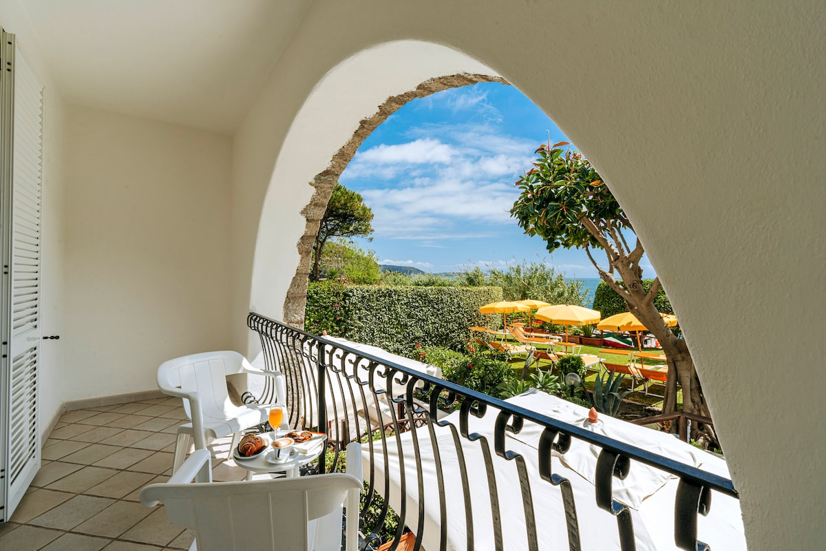 2-4 Huéspedes | 1 Dormitorio | Sala de estar con sofá cama | Frente a la playa | Acceso directo a la playa privada a solo 10 metros. Ubicado en las Rocas de Santa Ana, Gardenia Mare goza de una posición única entre el Castillo Aragonés y la Torre de Miguel Ángel. Es uno de los lugares más encantadores de Isquia, perfecto para quienes buscan relajación y una escapada ideal para parejas. Disfrute de una impresionante vista de 360° de Procida, el Monte Vesubio y Capri directamente desde su balcón. Wi-Fi y aire acondicionado incluidos.
