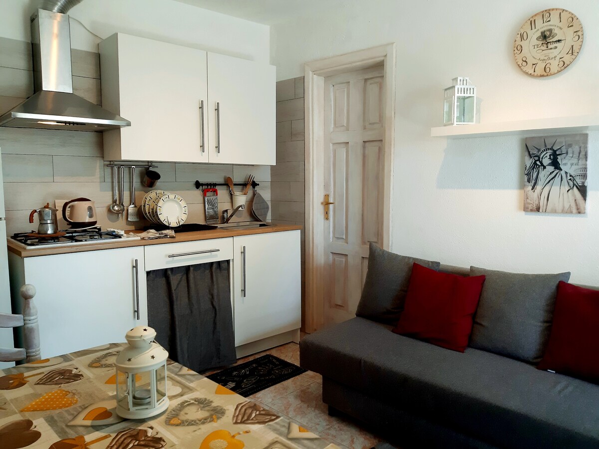 Grazioso y cómodo apartamento situado a pocos pasos del puerto de Ischia.Ideal para disfrutar de un sano relax! Propiedad de una familia de arquitectxs, el espacio ha sido recientemente renovado y amueblado con gusto, simplicidad y elegancia. Además de una amplia y confortable habitación con cama matrimonial, un baño con lavadora y una cocina equipada, cuenta con un refinado y luminoso espacio lounge cubierto por una veranda. Los espacios están climatizados. Imp. turístico 1€ por persona por día