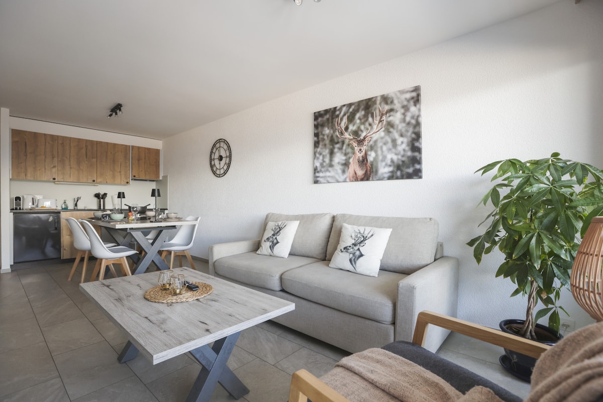 Estudio moderno de 30 m2 con aparcamiento subterráneo privado. Reformado en 2020 y excepcionalmente ubicado en el corazón de Verbier. A 100 metros del ascensor de Medran y a 5 minutos a pie de la plaza central y de la mayoría de los bares y restaurantes. - 1 cama doble grande con colchón Simba Hybrid Pro. - Sofá para relajarse. - Wifi (50 Mbps). - TV Swisscom (más de 1500 canales). - Aparcamiento privado subterráneo. - Balcón con vistas a la montaña, perfecto para explorar. - Cocina totalmente equipada. - Armario de esquí privado. - Caja de llaves para el registro de entrada.
