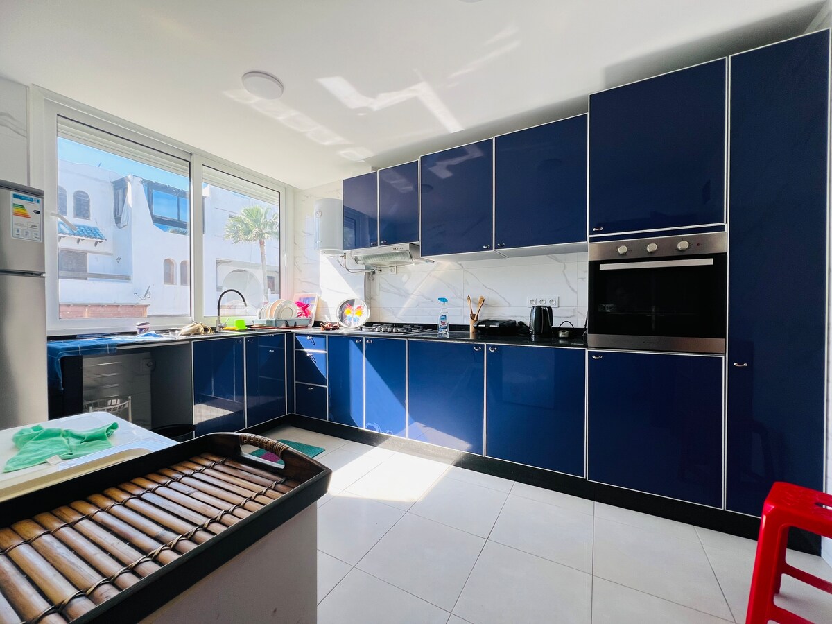 Despiértate con impresionantes vistas al puerto deportivo en este apartamento de 2 dormitorios en primera línea de Puerto Marina. Con dos elegantes salas de estar, una cocina abierta, aire acondicionado, WiFi, 1,5 baños y una espaciosa terraza para cenar, es perfecto para relajarse o entretenerse. A pocos pasos de restaurantes, vida nocturna y la playa, este alojamiento frente al mar ofrece la experiencia ideal en Marina Smir.