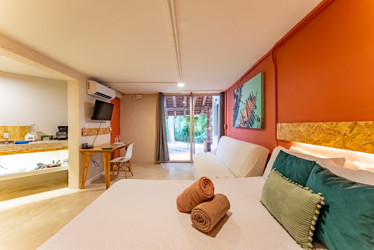 Just a 2.2. Km walk from the Puerto Juárez beach is this private studio located, ideal for getting to know the downtown area of Cancun and the quietest beaches in the area. You'll find just a steps away a local market, restaurants, coffee shops and the bus stop that will take you everywhere. - A solo 10 minutos caminando de la playa Puerto Juárez se encuentra este estudio privado, ideal para conocer la zona centro de Cancún y las playas más tranquilas de la zona.