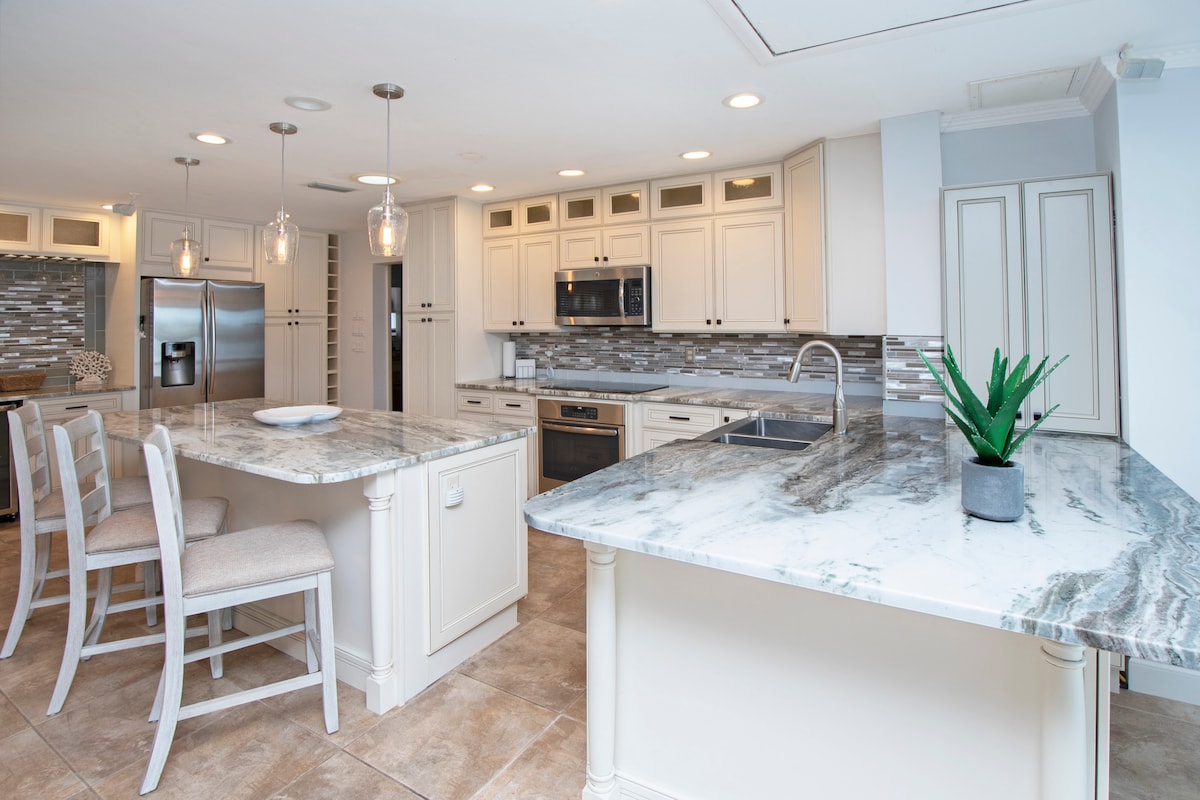 Bienvenido a tu escapada de ensueño en Isles of Capri, Nápoles, FL. Esta casa de lujo recién remodelada cuenta con electrodomésticos de última generación, un muelle privado para barcos y un sereno espacio al aire libre con chimenea. Ubicado en el agua, este refugio promete impresionantes vistas del atardecer y la máxima relajación. Perfecta para vacaciones en familia o escapadas románticas, ¡a poca distancia a pie de restaurantes locales! Reserva tu estancia hoy mismo para vivir una experiencia inolvidable en Florida llena de sol, vida silvestre y puestas de sol espectaculares.