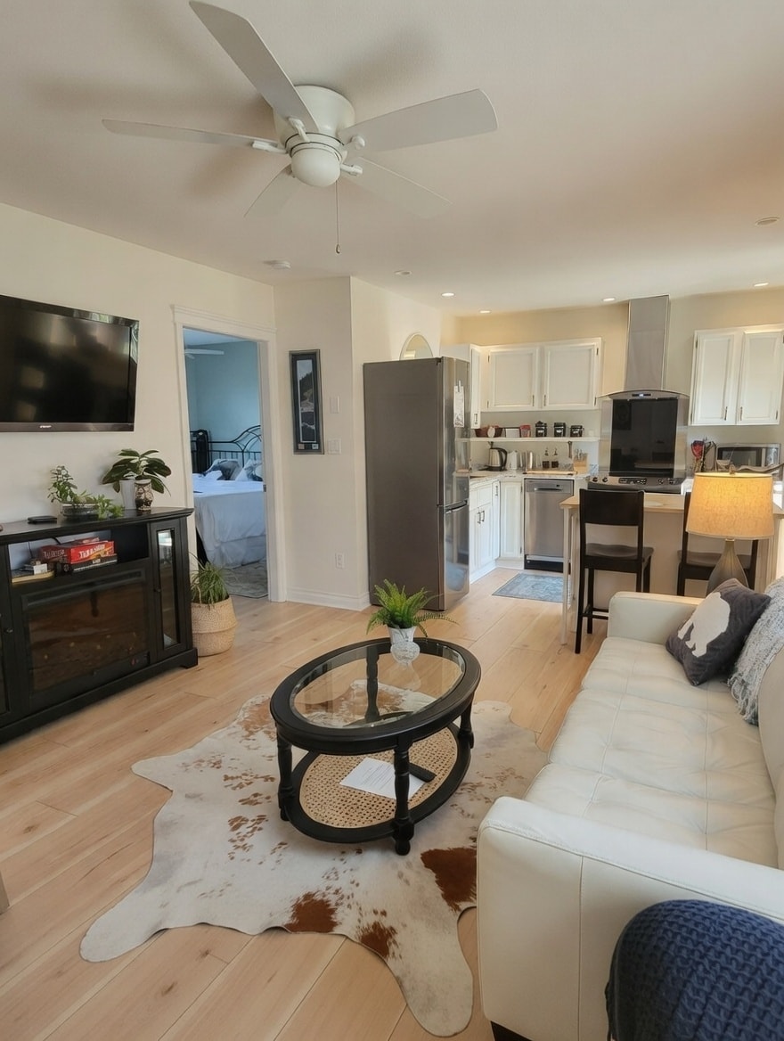 Nuestra casa está en el centro de un barrio tranquilo que está a 20 minutos a pie del hospital Royal Inland, a 4 minutos a pie de la parada de autobús de la ciudad y a 6 minutos en auto del centro de la ciudad para comprar comestibles o ir de compras. Si necesitas un lugar para alojarte para un torneo, una boda , un apartamento temprano en el hospital o simplemente un lugar para descansar, es posible que sea adecuado para ti. Nuestro apartamento de 1 dormitorio es un concepto luminoso, acogedor y abierto. La cocina ofrece 2 quemadores de inducción/ microondas/freidora de aire. Número de registro H962633554