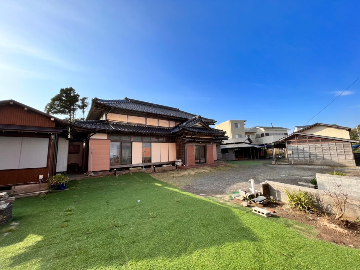 Es una casa de estilo Showa, típica de la campiña, cerca de la playa de Tōdō, en Kujukuri, Chiba, y de la costa de Tsurugasaki. Por favor, venga en coche o en taxi desde la estación de Daito. El jardín está equipado para hacer barbacoas. El jardín también es una propiedad grande, por lo que es posible alojarse con mascotas. Muy cerca se encuentran la playa de Daiyokai, el valle de Yoro y la costa de Onjuku. Es un alojamiento excelente para el verano. Por lo general, puede alojar hasta 8 personas, pero de julio a mediados de septiembre puede alojar hasta 10 personas. 10% de descuento para estancias de 7 noches o más 40% de descuento para estancias de 28 noches o más