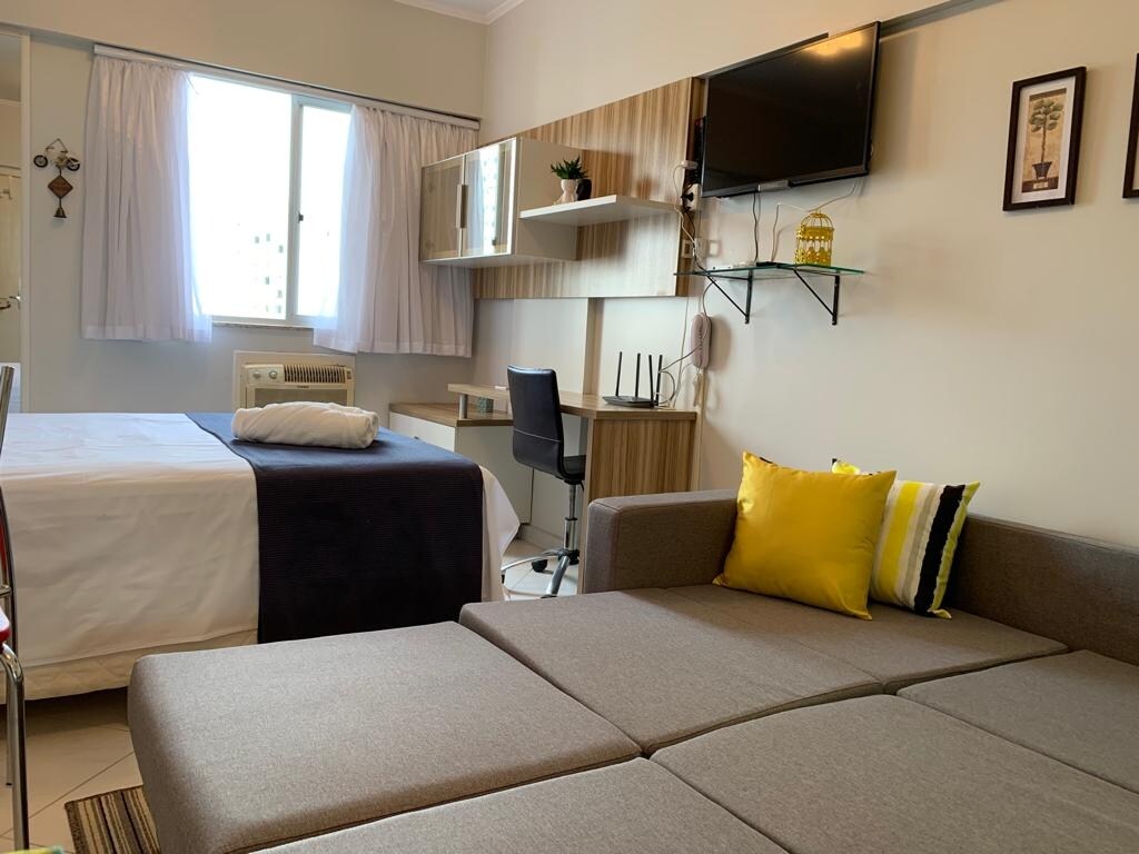 ¡Ideal para enamorarse! Kitnet con vista al mar, montaña y noria. No hay ventanas de otros edificios en el frente. ¡Maravillosa vista del litoral de BC Cómodo y acogedor! Aire acondicionado frío/calor. Piscina, jacuzzi, gimnasio y garaje. Pequeño pero totalmente cómodo. Bien comunicado: los autobuses locales paran enfrente. Cafetería y pizzería, tienda de conveniencia y lavandería autoservicio 24 horas dentro del edificio. Quiosco de alquiler.