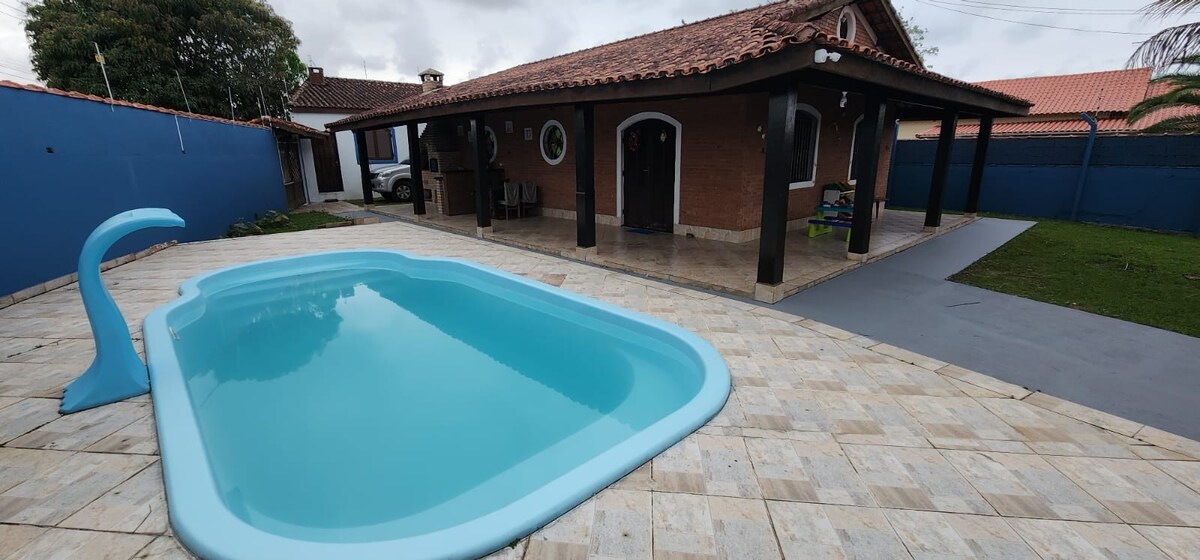 Un espacio súper acogedor para pasar días agradables con tu familia. 4 habitaciones espaciosas, dos de ellas suites, sala de estar con 3 sofás, televisión, Internet, cocina totalmente equipada con ollas, electrodomésticos (microondas y airfryer), vasos y copas. Zona de barbacoa, con horno de leña e iluminación (además del fregadero exterior) junto a la piscina. A 300 m de la playa, con un mercado cercano, panecillos calientes, carne fresca y todo lo que necesita para disfrutar y descansar. Ventiladores en todas las habitaciones.
