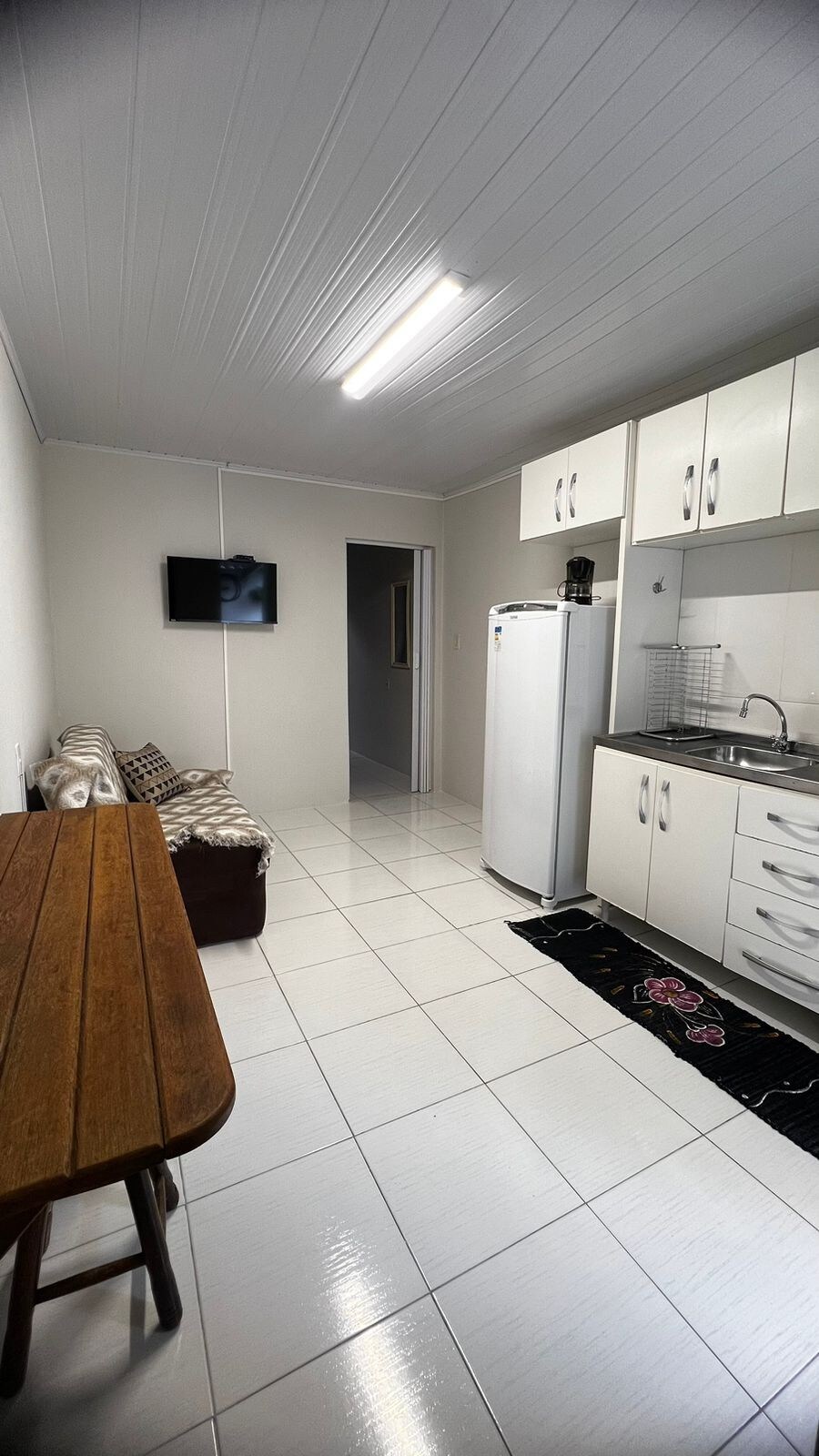 ¿Quieres disfrutar de las vacaciones alojándose en un vecindario tranquilo y cerca de la playa? Kitnet está a 4 minutos en auto y a 15 minutos a pie de la playa, los supermercados, las panaderías y los restaurantes. Espacio acogedor para 3 personas, siendo un dormitorio con cama doble tamaño queen y armario, aire acondicionado, una sala de estar equipada con sofá cama y televisión con cocina integrada con refrigerador, estufa, horno microondas, también tiene lavandería con máquina. También cuenta con una zona exterior equipada con estufa, lavabo, barbacoa e inodoro.