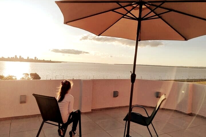 Este alojamiento único tiene mucho espacio para que disfrutes con los tuyos. Cuenta con una amplia sala, con 3 sofás y una cómoda mesa de madera para la cena. Amplia cocina con todas las comodidades y una mesa para desayuno. Dos amplios dormitorios con baño privado en cada una. Balcón super amplio con parrilla con vista al majestuoso río Paraná. Un ambiente ideal para pasar unas vacaciones o relajarte en Encarnación estando a un paso de la costanera y con la brisa del río.