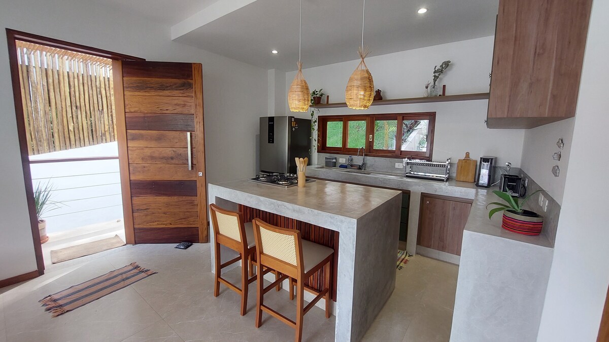 Casa en condominio en la cima, fácil acceso, a menos de 10 minutos de las playas del centro. La suite principal es muy cómoda, como un hotel con encanto. Ducha con bañera grande para 2, toda acristalada y con vistas al bosque. Colchón Queen super cómodo, TV 43 pulgadas nueva, aire acondicionado y terraza con vista al bosque atlántico. El río corre a pocos metros de la suite. Internet con dos proveedores. Ducha opcional externa y caliente.