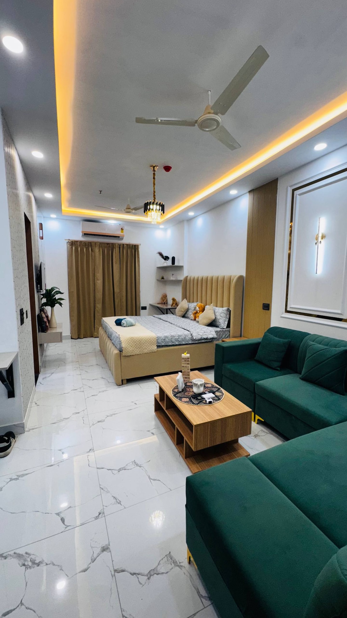 Nuestro apartamento de 2 dormitorios de nueva construcción combina la comodidad moderna con el encanto natural. El espacio cuenta con 2 dormitorios serenos con camas tamaño queen, una amplia sala de estar, una cocina bien equipada, 2 baños: uno adjunto al dormitorio principal y otro accesible desde la sala de estar y el segundo dormitorio y un balcón en forma de L que ofrece excelentes vistas de la ciudad. ¡La propiedad se encuentra cerca de un centro comercial prémium en Noida! Esta ubicación bien situada te ofrece la comodidad de tiendas, cafeterías y entretenimiento.