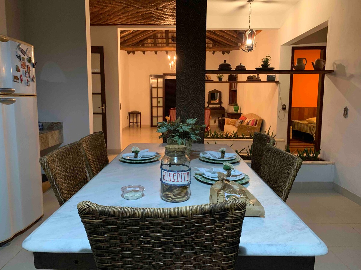 La casa tiene capacidad para 14 personas con comodidad. Suites con balcón, cocina completa con estufa de gas, nevera, congelador, microondas y todos los utensilios de cocina. Además de un gran comedor. Se proporcionan sábanas, mesa, sábanas y mantas. (Aceptamos animales educados). El alojamiento es una gran opción para traer a un grupo de amigos y familiares. Ubicación tranquila con una vista privilegiada del río Cipó, un lugar ideal para descansar, hacer barbacoa y tomar una piscina.