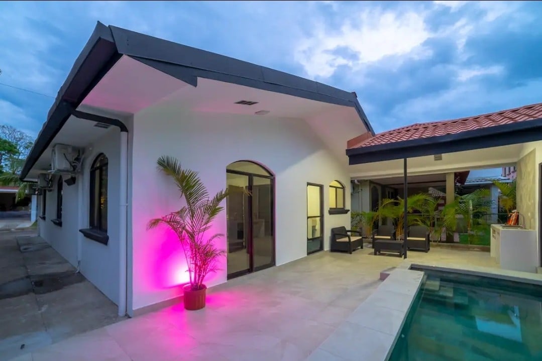 Nueva casa familiar ubicada en el paraíso tropical de Playa Hermosa. Sólo a 4 minutos a pie de la playa, con piscina privada. Está ubicada en un condominio cerrado con seguridad 24/7, que cuenta con beach club, restaurante y piscina frente al mar. Esta casa fue diseñada por una reconocida arquitecta Argentina y dueña de una de las Galerías de Arte más prestigiosas de Costa Rica. Esta casa la disfrutamos en familia y queremos que ustedes también puedan disfrutar de esta experiencia!