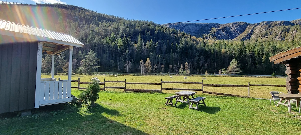Estamos ubicados en medio de las hermosas áreas naturales «Vestheie» y «Austheie». Vivirás en una granja que tiene pollos y cabras. El apartamento forma parte del cobertizo, completamente aislado y renovado. Cuenta con un dormitorio, sala de estar + cocina abierta y baño. En verano hay una gran mesa de picnic disponible en el exterior. Es el alojamiento perfecto para familias. Hay muchas caminatas para familias, pero también rutas de escalada, natación y posibilidades de pesca en la zona.