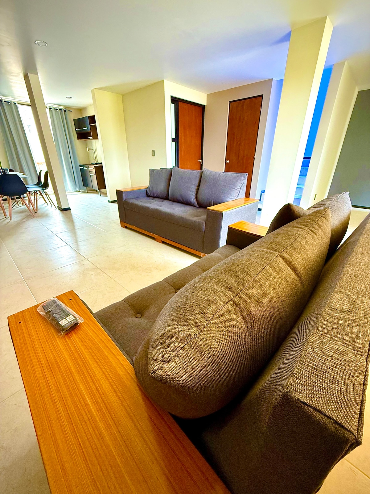 El espacio cuenta con un diseño limpio y funcional, iluminación cálida tipo LED que crea un ambiente relajante, y una TV 55” 4K ideal para disfrutar tus series o películas favoritas. Gracias a su distribución y 3 baños completos, es perfecta para familias, parejas, grupos pequeños o estancias de trabajo. Ya sea por pocos días o una estancia más larga, encontrarás todo lo necesario para sentirte como en casa desde el primer momento. Esperamos disfrutes tu estadia!