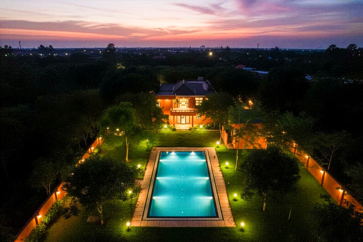 Aero Breeze 3BHK | Villa con piscina y vistas a la pista