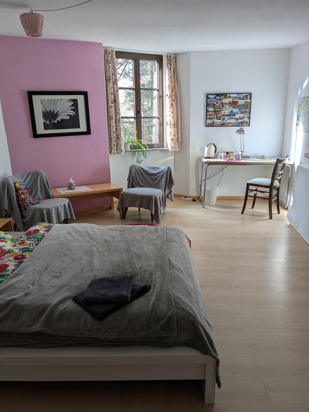 CHECK-IN CON CAJA DE LLAVES Apartamento de vacaciones reformado en el centro del pueblo. Durante el día, es posible que haya más tráfico de lo habitual. Por la noche, es en gran parte tranquilo. Albisheim se encuentra en el centro del valle de Zellertal y es un punto de partida ideal para hacer excursiones en bicicleta y a pie por el valle de Zellertal. Ubicación conveniente. Muy buena conexión con la A63, A6 y A61. 1 salón-dormitorio con sofá cama y cocina equipada. Tamaño 33 m². Bajo petición, uso de lavadora y secadora