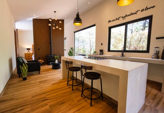 La Lima es una cabaña minimalista de 60 metros cuadrados, ubicada en el pintoresco y pequeño pueblo de El Remudadero, Comala, donde la tranquilidad y la conexión con la naturaleza son protagonistas. Este loft moderno se destaca por su diseño contemporáneo que abraza la estética minimalista, eliminando elementos superfluos y enfocándose en la funcionalidad y el confort. Al cruzar el umbral de La Lima, los visitantes son recibidos por un espacio de sala-comedor y cocina de doble altura. Vive verde