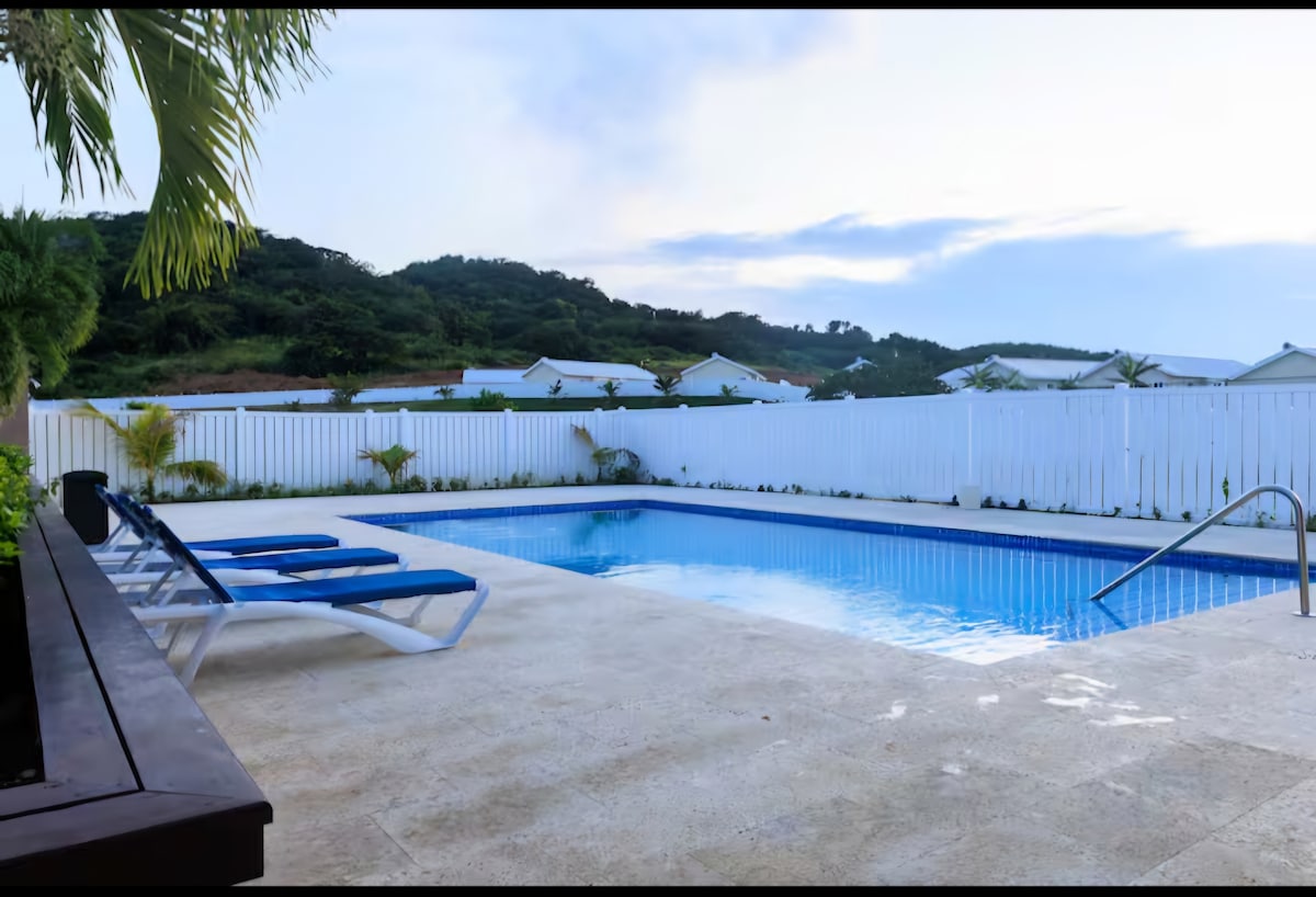 Escápate al hogar lejos de casa en una casa privada y acogedora de dos dormitorios, dos baños, cocina, lavandería, sala de estar y comedor. Esta casa de reciente construcción está en una nueva comunidad cerrada moderna. Aire acondicionado y ventilador de techo en ambos dormitorios y sala de estar, electricidad solar y agua caliente, tanque de agua, internet Starlink, encimera de cocina y baño de granito, lavadora, secadora, armario con puerta corredera, valla trasera, patio grande, entrada y planta abierta. Estas son algunas de las muchas características.