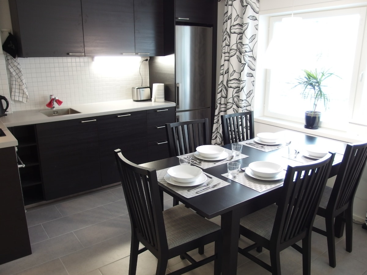 Petsamo Apartment está totalmente equipado, luminoso y espacioso apartamento en el piso superior en una casa privada de madera. Dos dormitorios y un gran espacio abierto para la cocina y la sala de estar con dos sofás cama. Aproximadamente 80 metros cuadrados, tiene capacidad para un máximo de 7 personas. Entrada propia, estacionamiento gratuito y uso gratuito del patio con parrilla. Situado en un entorno verde y tranquilo, a 700 metros del centro y a 1500 metros de la estación de tren. Buenas conexiones de tren: 50 minutos a Helsinki y a una hora del aeropuerto de Helsinki.