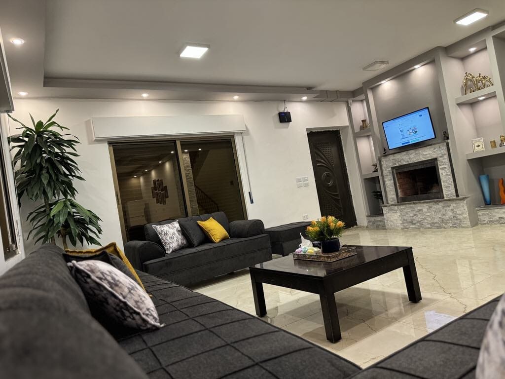 Relájate en una casa moderna rodeada de bosques y montañas de Ajloun Despiértate con vistas panorámicas desde dos amplios balcones. Temprano por la mañana puedes ver los paisajes de Alshiekh en el Líbano y Nablis en Palestina, disfrutar de un tranquilo jardín con árboles frutales y reunirte con amigos alrededor de la zona de asientos al aire libre y barbacoa. La casa tiene capacidad para seis personas, con una cocina totalmente equipada, un salón acogedor y dormitorios cómodos. Perfecto para familias, parejas o cualquier persona que busque un refugio privado cerca de la naturaleza