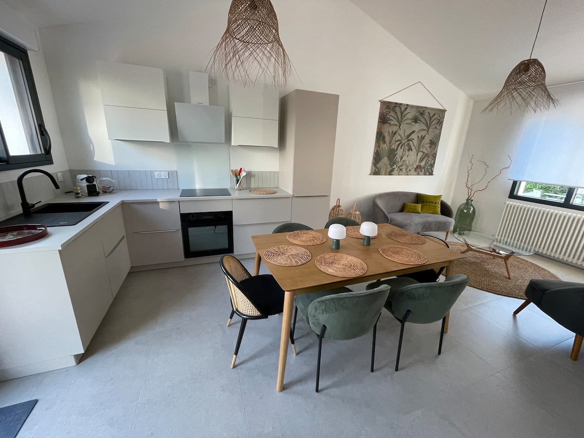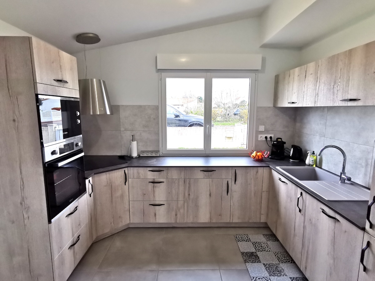 ¡Deje las maletas! ¡L'écho des Vagues ha sido especialmente diseñado para sus momentos de relajación y placer en familia o con amigos! Con una ubicación ideal, a solo 5 minutos del centro de Jard sur Mer y a 10-15 minutos de la playa de Boisvinet por el bosque, puede disfrutar de su estancia sin utilizar el coche. Las camas están hechas a su llegada, se proporcionan toallas, productos de higiene y limpieza, la máquina de café está llena, solo tiene que disfrutar.