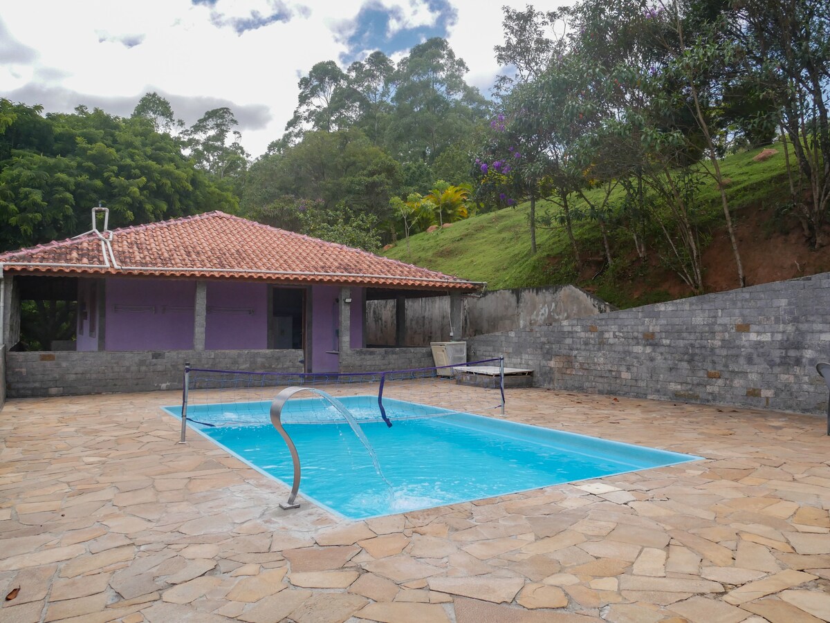 ¡Venga al Mini Hotel Fazenda! Sitio privado con más de 6000 m² de área verde, ideal para relajarse en la naturaleza con comodidad y privacidad. Destacado para la piscina climatizada, perfecta para disfrutar incluso en noches frías o días nublados, creando momentos únicos para dos o con la familia. Tiene capacidad para 9 personas en 3 dormitorios, cocina, sala de estar al aire libre, zona de barbacoa y 3 baños. Tiene wifi, 4G, sala de juegos, TV vía satélite y un encantador par de ponis. ¡A solo 800 metros del asfalto!
