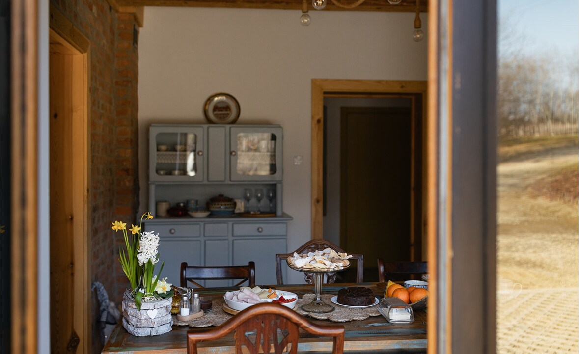 Położony na południowym stoku, w środku prywatnego lasu z niesamowitym widokiem i z dala od innych zabudowań daje możliwość odprężenia i oderwania się od codzienności. Dwupoziomowy taras z paleniskiem i jacuzzi, przestronny salon, jadalnia oraz duży ogród i las za domem pozwala w pełni zrelaksować się nawet przy większej grupie osób. Przestronny parking na 8 samochodów daje swobodę indywidualnego dojazdu dla każdego z uczestników. Lokalne restauracje mają szeroki wybór dań z dostawą do domu.