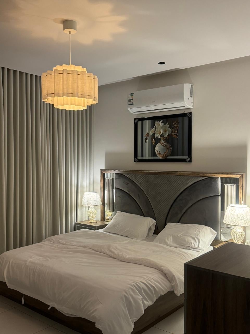 Apartamento de lujo con un diseño moderno, con una ubicación distintiva cerca del aeropuerto, el Mall of Arabia y King's Road. Está disponible en una posición privada y con acceso inteligente para mayor comodidad y privacidad. Una estadía de alta gama te espera y es un placer hospedarte, Estimado huésped