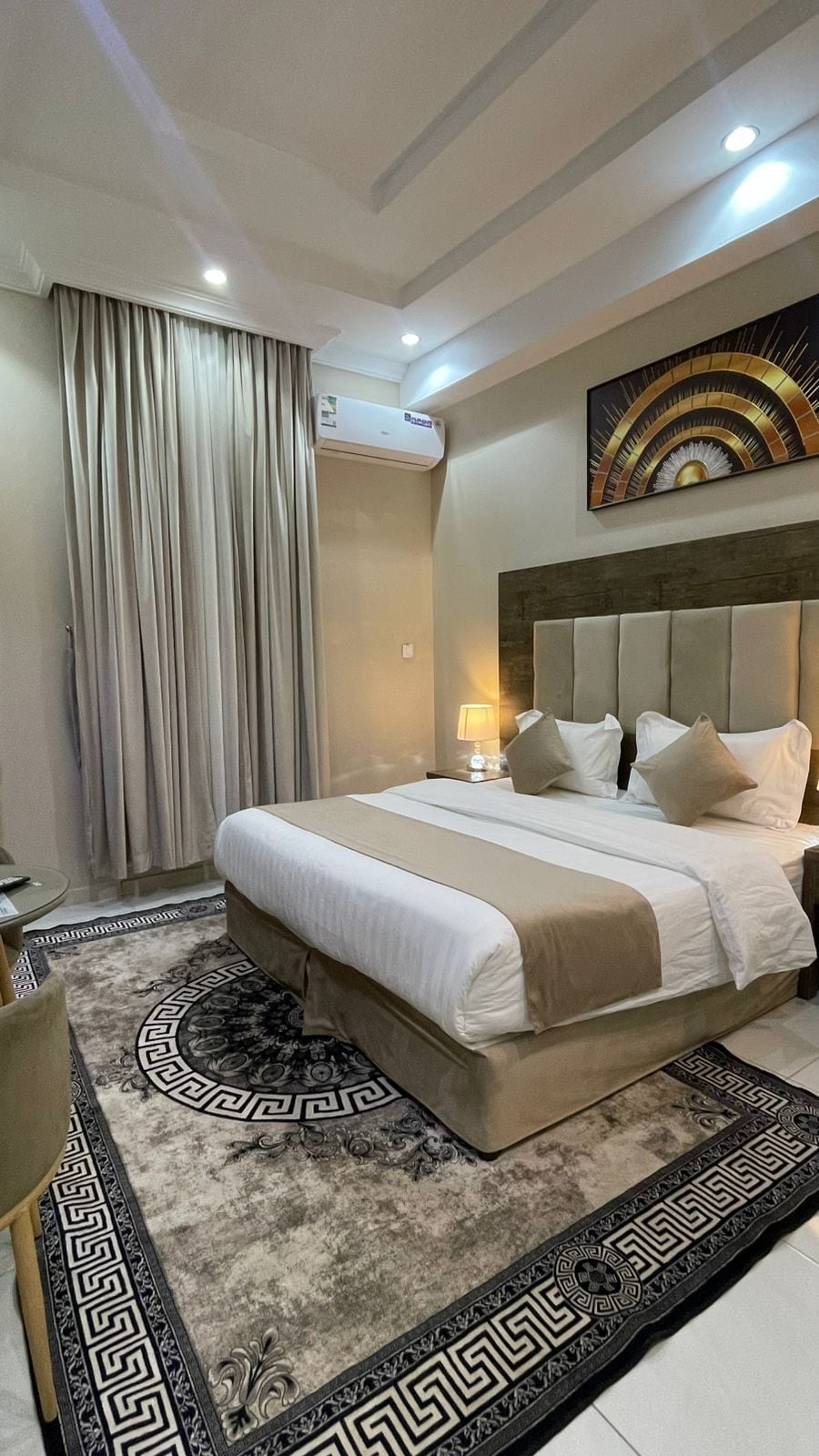 Este espacio se caracteriza por la tranquilidad, el diseño moderno y la tecnología moderna. La habitación también cuenta con iluminación tranquila, cepillos de hotel de lujo y atención a los mejores detalles de limpieza, servicio a la habitación y recepción disponibles durante toda la hora,, proximidad del hotel a servicios como(supermercado,restaurantes, centro comercial, lavandería, mezquita, panadería y muchos más), además de personal de recepción exigente en cómo servir al huésped y cumplir con los deseos, la habitación tiene lavadora, caja fuerte, pantalla de televisión inteligente y plancha.