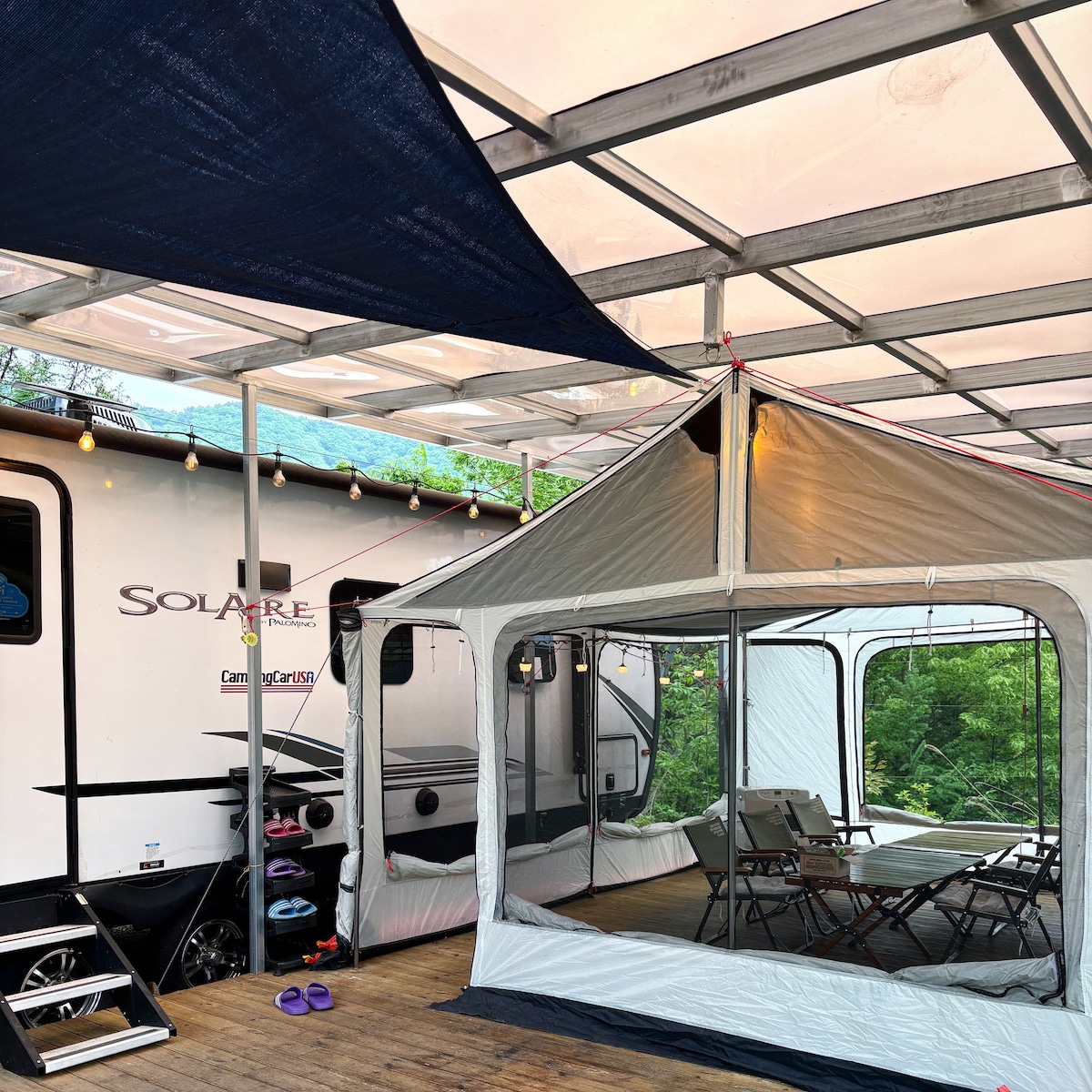 Won's Caravan Stay✨ Este alojamiento es para familias, amigos y conocidos en un bosque tranquilo Puedes tener una experiencia diferente como si hubieras venido en un viaje en caravana. Para aquellos que quieran sentir la emoción de acampar más cómodamente, hay baños, instalaciones de cocina, agua caliente, aire acondicionado y calefacción. Es un alojamiento de caravana. Hay una instalación de barbacoa al aire libre Disponible para reserva con antelación. Hay un gran fogón. (Venta de leña) * Vajilla básica * Wifi gratis disponible * TV disponible * Toallas proporcionadas para el número de personas reservadas * Los bebés (mayores de 36 meses) están incluidos en el número de huéspedes. (Menos de 36 meses gratis)