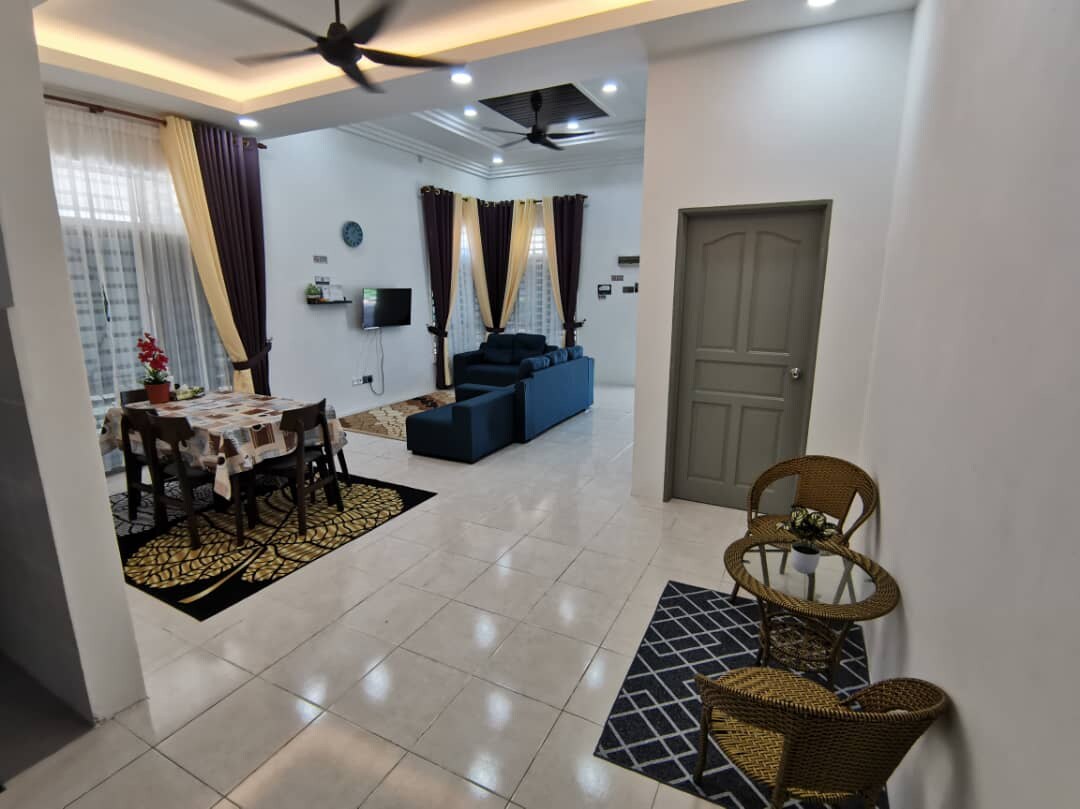 Bermaley Homestay - Aire acondicionado en la sala de estar. - 3 habitaciones y 2 baños con calentador de agua. - El dormitorio principal tiene 1 cama tamaño queen y aire acondicionado. - El segundo dormitorio tiene 1 cama queen, 2 camas individuales con aire acondicionado - El tercer dormitorio tiene 1 cama tamaño queen con aire acondicionado. - Dispensador de agua Coway - Cocina - Microondas. - Refrigerador. - Televisión inteligente de43pulgadas con Njoi - ¡NO HAY LAVADORA DISPONIBLE! Bermaley Homestay está cerca de: - Pantai Bukit Keluang: 5 minutos en auto. - Pantai Air Tawar: 10 minutos en auto. - Muelle a Pulau Perhentian: 15 minutos en coche.