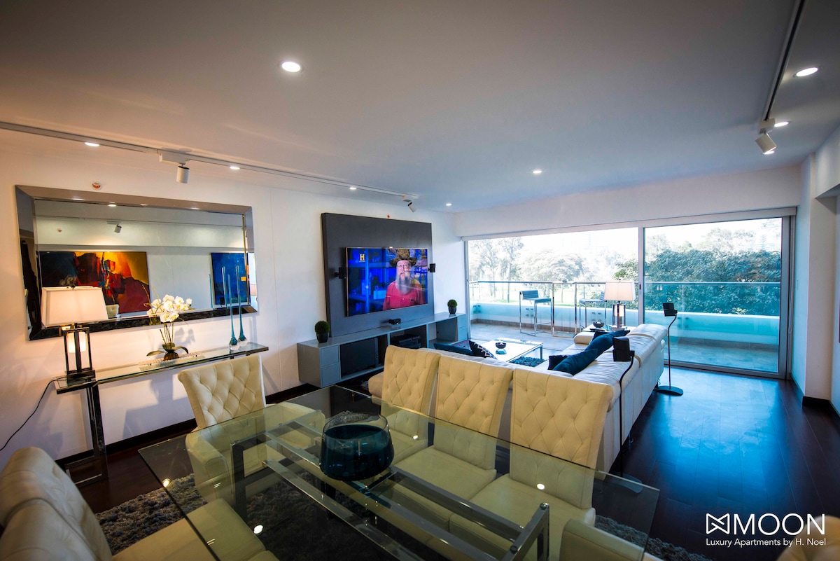 Apartamento de estreno, ubicado en una exclusiva zona de Lima, Perú. Tendrás cerca restaurantes, cafeterías, supermercados, centros comerciales, farmacias, casinos y gimnasios todos a menos de tres cuadras. Creado con la intención de ofrecer un espacio cálido y acogedor a nuestros huéspedes, además de proporcionar vistas panorámicas excepcionales que te permitirán disfrutar de puestas de sol y de la belleza de la ciudad. Reserva con nosotros y vive una experiencia placentera. Te esperamos!