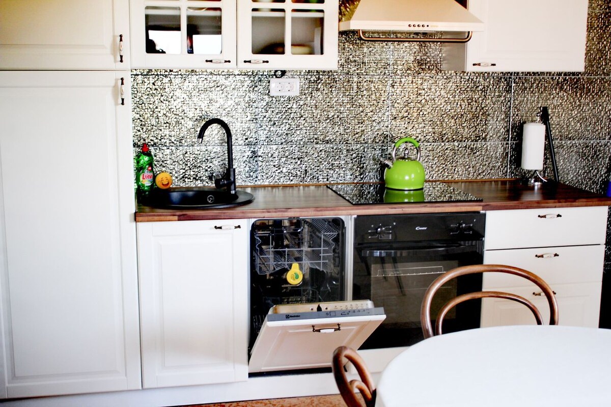 El apartamento dúplex consta de cocina, comedor y sala de estar, baño en la planta baja. En la planta superior hay una zona de dormitorio desde la que se puede salir al balcón. El balcón tiene una hermosa vista al centro de la ciudad. La parte de la planta superior es una hamaca (red) donde puedes relajarte, leer un libro y hacerte algunos selfies.