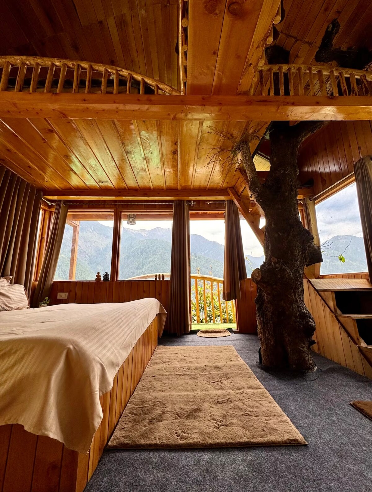 Te encantará esta escapada única y romántica. Esta acogedora casa del árbol en Tandi: sobre las nubes, envuelta en niebla. Este es un lugar para soñadores. Un santuario. Un espacio donde el viento cuenta historias antiguas y la tranquilidad se siente como un abrazo. Ya sea que estés acurrucado en la cama o en el jacuzzi, sentirás la magia del Himalaya que te rodea. Es una casa del árbol de 280-300 pies cuadrados.